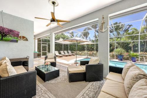 Located in Naples, Lux Family 3 BR With Pool Villa Walk To Beach and Mercato provides accommodation with private pool, free WiFi and free private parking for guests who drive. With garden views, this accommodation features a patio. The property is non-smoking and is situated 2.4 km from Vanderbilt Beach. The spacious holiday home comes with 3 bedrooms, 3 bathrooms, bed linen, towels, a flat-screen TV with streaming services, a dining area, a fully equipped kitchen, and a terrace with pool views. The air-conditioned unit at the property features a walk-in shower and a dressing room. The property has an outdoor dining area. The area is popular for cycling, and free use of bicycles is available at the holiday home. Guests can relax in the garden at the property. Tin City is 14 km from Lux Family 3 BR With Pool Villa Walk To Beach and Mercato, while Silverspot Cinema is 1.3 km away. Naples Municipal Airport is 16 km from the property.